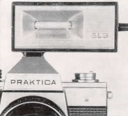 The PRAKTICA super TL 1000 has been designed for synchronization of flashbulbs and electronic flash units. Flash units provided with a center contact are pushed into accessory shoe (6). Set the shutter speed dial either to :g or f.